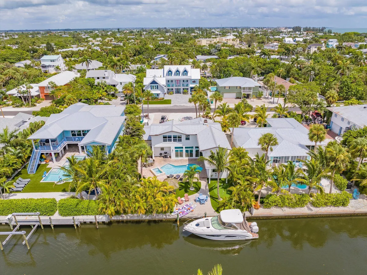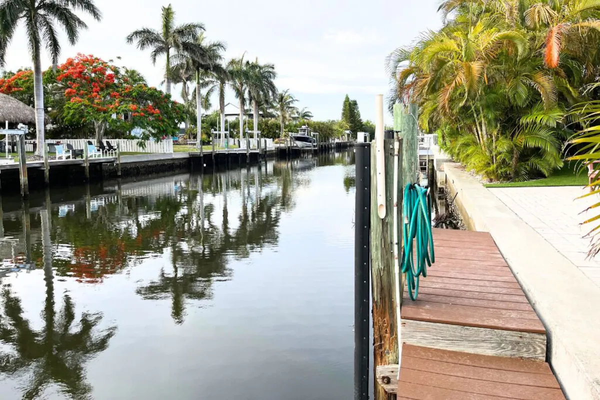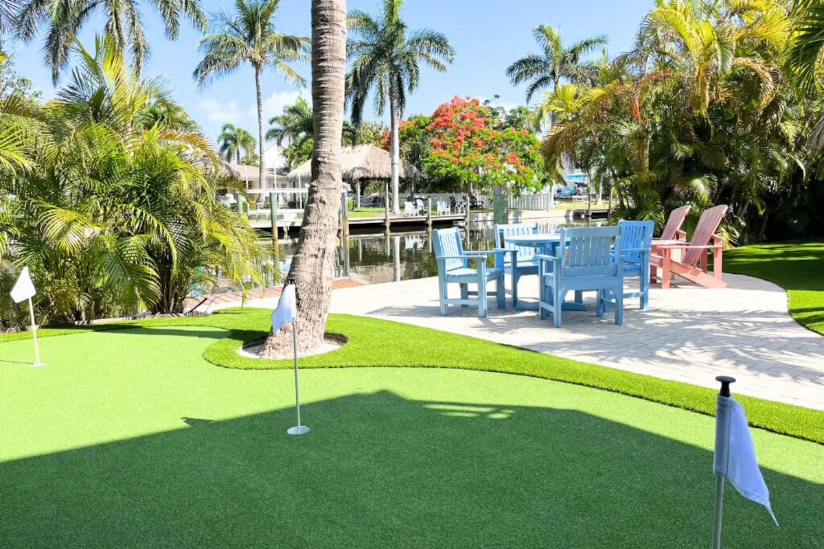 THE EXTERIOR ~ The large heated pool and large hot tub spa is located in a lush tropical setting and invites you to swim the day away. Play on the newly installed putting green right next to the waterfront dock. Catch a siesta on the sun loungers or cozy up with a good book in the lazy hammock shaded by the palm trees. Enjoy lunch “al fresco” at one of 2 outdoor dining tables next to the pool. The tiki hut is a favorite spot to gather for a cocktail, gaze at the canal and enjoy “island time”. The deepwater canal and private dock area at the backdoor for your enjoyment, perfect for fishing or renting a boat. Sirenia By The Sea offers direct access to Bimini Bay and the Gulf of Mexico (no bridges!). Bring your boat!